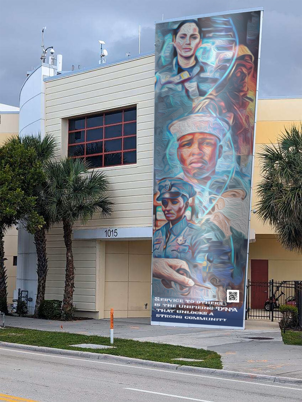 The Veterans Trust, United Way of Broward County’s MISSION UNITED, and BBX Capital Foundation unveiled a Functional Public Art Mural designed to Support Veterans, First Responders & Healthcare Professionals